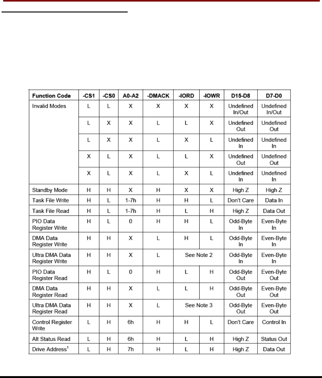 Table: True IDE Mode I/O Function defines the function of the operations for the True IDE Mode.