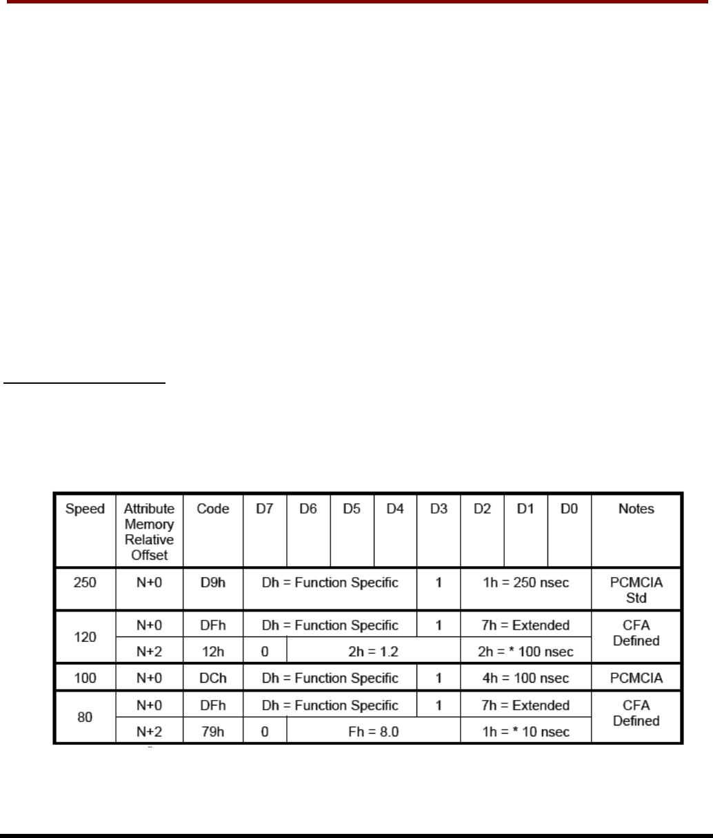 cycle time. These modes are not supported by the PCMCIA PC Card specification nor CF by cards based on revisions