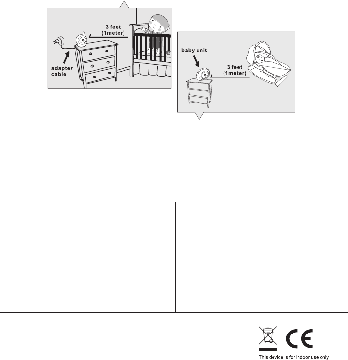 Make sure the baby unit and AC adapter cords are always out of reach of the