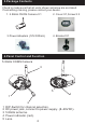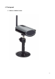 .Package Contents Check to make sure that all units shown as below are enclosed. If something missing, please contact your dealer. 1. 5.8GHz CMOS Camera X 1 2. Cover X1,Screw X 2 3.Power Adapters (12V/300mA) 4. Bracket X1 2.Package 4.Panel Control Contents and Function 5.8GHz COMS Camera 3 5 4 1 2 1 2 3 4 5 DIP-Switch for channel selection. DC power jack, connect to power supply. (8~28VDC). 5.8GHz antenna. Power indicator (red). Lens.