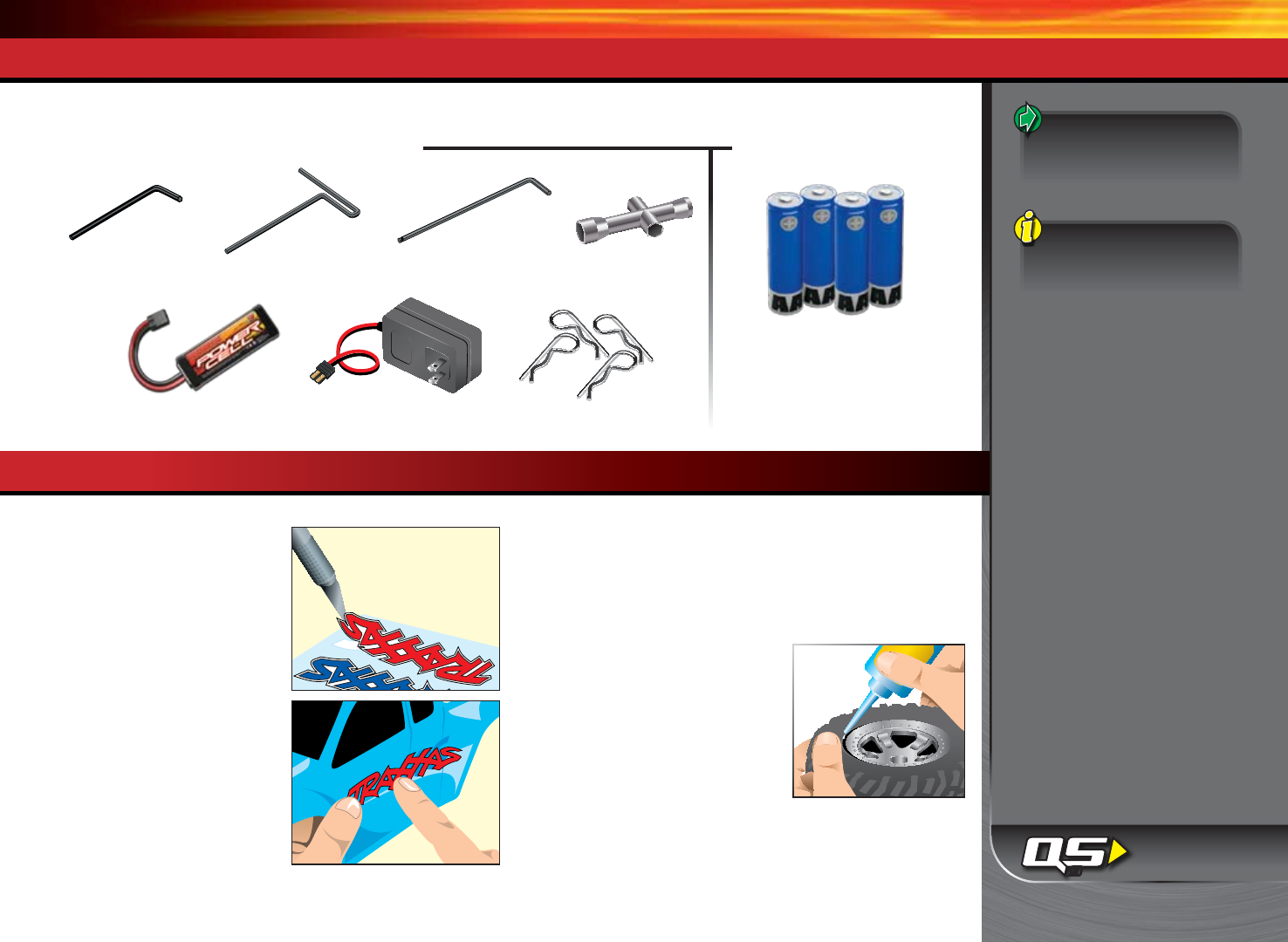 Your model comes with a set of specialty metric tools. You’ll need to purchase other items, available from your hobby dealer, to operate
