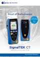 SignalTEK CT Datenkabel TransmissionTester Proof of Performance Bei der Installation und Wartung von Datenkabeln erlaubt der SignalTEK CT die Erstellung von PDF-Testberichten, die nachweisen, dass die installierten Strecken Übertragungen bei Gigabit Ethernet-Datenraten gewährleisten. Damit steht dem Installateur eine einfache und kosteneffektive Möglichkeit zur Verfügung, um zweifelsfrei zu belegen, dass die Kupferleitungen fehlerfrei verlegt wurden und Ethernet-Anwendungen unterstützen.
