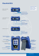 FiberMASTER Tamaño del producto Altura = 170 mm Anchura = 108 mm Quad / PON OTDR / Fuente de luz Fondo = 51 mm OTDR Quad / PON Conector de la sonda de inspección de vídeo Medidor de potencia OTDR multimodo o de modo único MM/SM OTDR/ Puerto de la fuente de luz Puerto VFL Puerto de la sonda de inspección de vídeo Medidor de potencia Medidor de potencia Puerto VFL Puerto de la sonda de inspección de vídeo Medidor de potencia Protectores de goma para los conectores ópticos Interfaz de usuario intuitiva