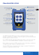 FiberMASTER OTDR Test de puissance optique Gamme complète d’adaptateurs interchangeables disponibles Port de localisation des défauts VFL Standard 2,5 mm avec adaptateur 1,25 mm disponible Prend en charge tous les types de connecteurs SC standard, FC et ST en option Certification OTDR pour la certification de niveau 2 des câblages en fibre optique monomode et multimode FR Centrage automatique/ Pass/Echec Video Microscope Système Video Microscope avec capacités de PASS ou Echec automatiques selon l’