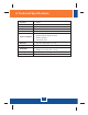 4. Technical Specifications Frequency Funtion 2.4GHz Standard USB 1.1/2.0 Supported OS Maximum Distance Power Source Windows 2000/XP/Vista Up to 30m (100 ft) 1 AAA (1.2V) battery included Presenter: 1.5V, 1.2mA Presenter with laser pointer: 3V, 27mA Power Consumption Receiver: 5V, 30mA Laser Pointer: 1mW Dimension 105 x 30 x 19.5mm (8.2x 1.2 x 0.7 in.) Weight 120g (4.