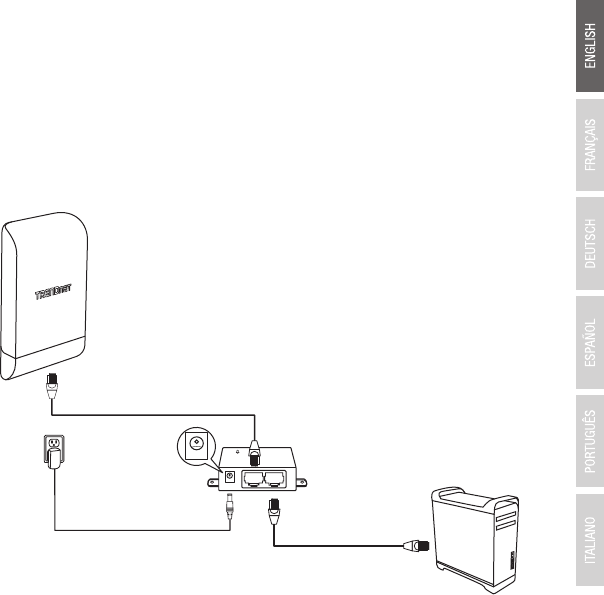 8. Connect the included power adapter to the PoE injector POWER IN on the included PoE
