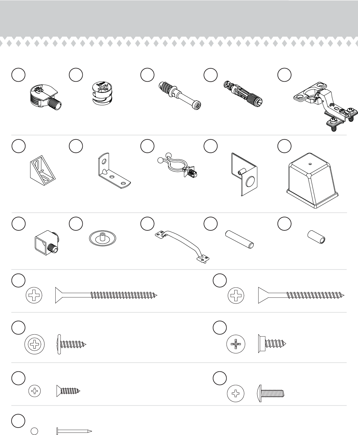 å Screws are shown actual size. You may receive extra hardware with your unit.