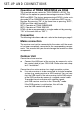 SET-UP AND CONNECTIONS Serial port RS 232 The RS 232-port is used to update the software and preprogramming via PC. USB The Universal Serial Bus connector is intended for high-speed data transfer, for example between the receiver and a PC. In case the satellite receiver is used in connection with “Internet-via-satellite”, this connection is used as data transfer to the PC. Modem Your TRIAX DVB 65S has a build-in telephone modem.