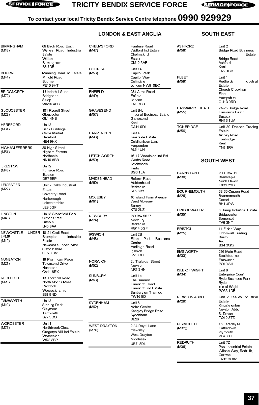 To contact your local Tricity Bendix Service Centre telephone 0990 929929