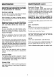 MAINTENANCE MAINTENANCE Cont'd DISCONNECT THE HOOD FROM THE MAINS SUPPLY BEFORE CARRYING OUT ANY KIND OF MAINTENANCE OR CLEANING. Worktop Lighting if & lamp fails to function at any time first check that it is fully screwed into the hider. When changing the lamp an identical replacement must be fitted to ensure the safe working of the cooker hood. Replacement lamps are specified 230-volts Ad Watt clear cylindrical, candle, or tulip shape with small Edison (E14) screw thread cap.
