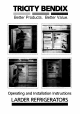 CONTENTS Page Important User Information 1 Your Appliance 3 How to Install your Appliance (Before using your appliance) 4 Adjustment of Door 7 Reversible Hinging 8 Decor Kits 9 How to Use the Temperature Control Dial 10 Your Larder Refrigerator 1 Temperatures 11 Fresh Food Compartment it Dewar Storage 11 Helpful Hints When Buying Foods 12 Preparing Foods for Storage 12 Fresh Food Storage Guide 12 Defrosting Your Larder Refrigerator 13 Replacement of Interior Light Bulb i3 Cleaning and Care 14 If Going on Ho