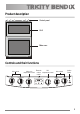 Product description Control panel Grill Main oven Controls and their functions Hob controls 1 Grill Electronic Main oven temperature control minute temperature control minder Hob controls Ignition switch 5