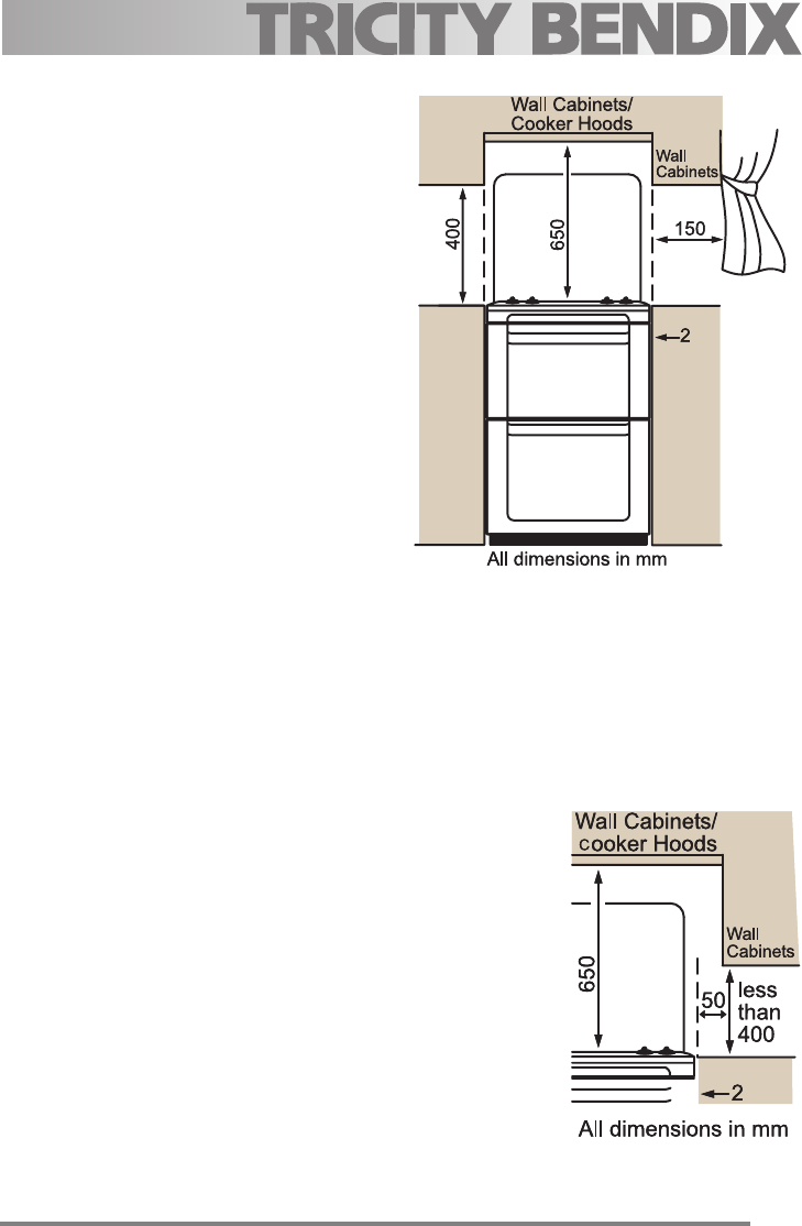 above the top of the hob (or greater for