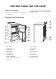 INS TR UCTIONS FOR THE USER General information This appliance is designed for the refrigeration of food in a domestic home. To ensure correct operation, the appliance should be located where the ambient temperature is between 16-32 °C. Description of the appliance 1. Wire shelf 10. Door gasket 2. Defrost water drain 11. Bottle shelf 3. Glass shelf 12. Egg tray 4. Salad drawer 13. Air circulation 5. Rating Plate 14. Air vent 6. Adjustable feet 15. Condenser 7. Butter compartment 16.