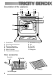 Description of the appliance 6 4 3 2 5 1 7 8 9 10 11 1. 2. 3. 4. 5. 6. Control Panel Oven Function Control Knob Electronic Programmer Thermostat Control Knob Mains On Indicator Thermostat Control Indicator 7. Air Vents for Cooling Fan 8. Grill 9. Oven light 10. Oven Fan 11.
