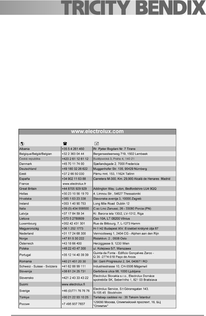 This appliance is guaranteed by Electrolux in each of the countries listed at the back of this user