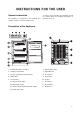 INS TR UCTIONS F OR THE USER General information This appliance is designed for the freezing and storage of frozen food in a domestic home. To ensure correct operation, the appliance should be located where the ambient temperature is between 16-32 °C. Description of the Appliance 1. Freezing tray (with 4 ice trays) 6. Defrost water outlet 2. Freezing compartment 7. Adjustable feet 3. Storing compartments (wire baskets) 8. Door gasket 4. Rating Plate 9. Thermostat 5. Control Panel 10.