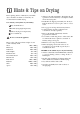 Hints & Tips on Drying Before placing articles of laundry in your tumble dryer, check the care labels to ensure they are recommended for tumble drying. • Always load well spun laundry. The higher the spin speed the lower the electricity consumption and the shorter the drying time. • DO NOT load dripping wet laundry into the dryer. Roll the article in a towel or spin to remove excess water. • Close poppers and zips and fasten any buttons. • Sort the laundry.