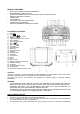 PRODUCT FEATURES - BLUETOOTH WIRELESS MUSIC STREAMING PRORAMMABLE CD/MP3 PLAYER AUX IN FOR CONNECTION OF OTHER DEVICE (EG. CD & MP3 PLAYER) USB SLOT FOR MP3 PLAYBACK AM/FM RADIO CLOCK DISPLAY LCD DISPLAY WITH BLUE BACKLIGHT STEREO BUILT-IN SPEAKER ADAPTOR & REMOTE CONTROL INCLUDED - LOCATION OF CONTROL 1) 2) 3) 4) 5) 6) 7) 8) 9) 10) 11) 12) 13) 14) 15) 16) 17) 18) 19) 20) 21) 22) 23) 24) 25) 26) SPEAKER STOP PLAY/PAUSE BUTTON MODE / CLK\ RADIO FREQUENCY DIAL SCALE DIAL POINTER RADIO TUNING KNOB SKIP UP