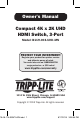 Owner’s Manual Compact 4K x 2K UHD HDMI Switch, 3-Port Model: B119-003-UHD-MN PROTECT YOUR INVESTMENT! Register your product for quicker service and ultimate peace of mind. You could also win an ISOBAR6ULTRA surge protector—a $50 value! www.tripplite.com/warranty 1111 W. 35th Street, Chicago, IL 60609 USA www.tripplite.com/support Copyright © 2015 Tripp Lite. All rights reserved. 15-06-114-93347A-EN.