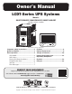 Owner’s Manual LCDT-Series UPS Systems Models: SMART1500LCDT, OMNI1500LCDT, SMART1300LCDT (AG-0066, AG-0067, AG-0068) TEST MUTE TEST MUTE Not suitable for mobile applications Important Safety Instructions..................2 Quick Installation....................................3 Basic Operation......................................4 UPS On/Off...........................................4 LCD Screen..........................................5 Display UPS/Power Conditions................