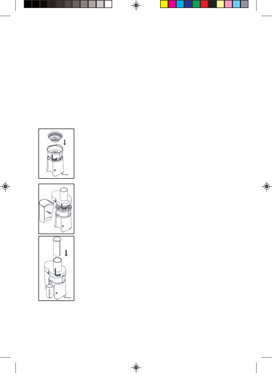 Place the juicer lid (7) onto the container (5) and turn anti-