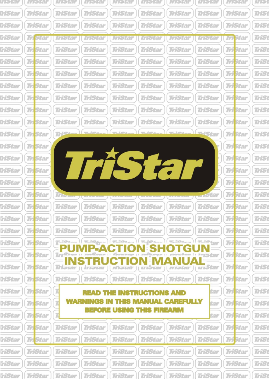 INTORDUCTION TO TRIS TAR SPORTING ARMS For many years, TriStar has been import ing quality shotguns. Co mb ine the old world quality with modern technology, and you have TriStar Shotguns. We at TriStar thank you for the privilege of delivering a product to you that will provide you with yea rs of pleasurable use. Happy shot gunning. ABOUT YOUR PUMP S HOTGUN Your TriStar is manually operated. Once a shell has been fired, the locking lug in the bolt moves down, unlocking the gun.