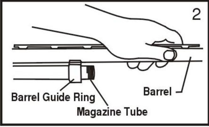 4. Slide the barrel guide ring over the magazine tube. Clean the barrel following the instructions on Page 12.