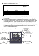 Procédures d’utilisation ◆ Branchez la prise, “00:00” s’affichera sur l’écran à cristaux liquides. ◆ Choisissez le programme de caisson en appuyant sur “ + ” ou “ – ”. N° de Programme 1 2 3 4 5 6 7 8 0 ◆ ◆ ◆ Aliment Riz Poulet Poisson Oeufs Crevettes Légumes Fruits Autres Désactive l’affichage Temps de référence (minutes) 33 30 26 23 21 35 20 manuel Après avoir choisi le programme de cuisson de 1 à 7, sur “START/OFF” pour commencer la cuisson, pendant que l’horloge décompte, l’indicateur est allumé.