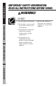 Customer Service Troubleshooting Tips Operating Instructions Safety Information Notes.
