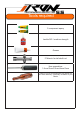 Index Content Pages 2 3 Safety notice 4-5 Features and about 6-7 Tools and electronics 8-9 Motor, esc, connectors,blades 10-11 Screws, nuts, shims and washers 12-15 Head assembly 16-22 Tail assembly 23 Servos preparation 24 Battery tray 25-28 Upper main frame assembly 29 Motor mount and pinion 30 Servo frame and motor support. 31-32 Upper and lower main frame assembly 33-36 Landing gear, servos, electronic assembly and wiring.