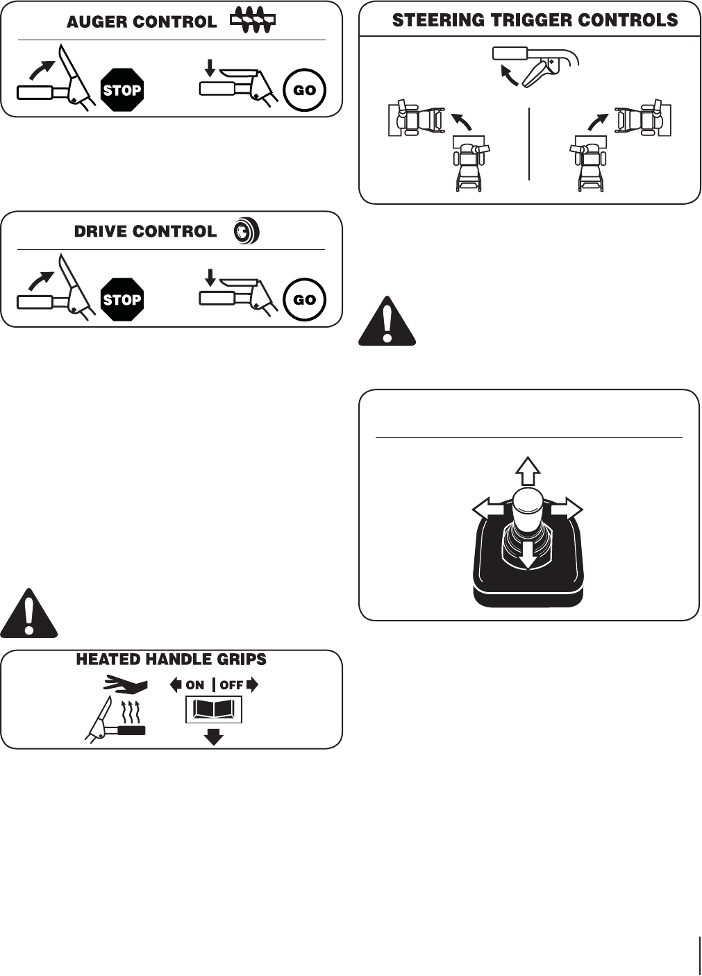 engaged. Release both controls to stop the augers and wheel