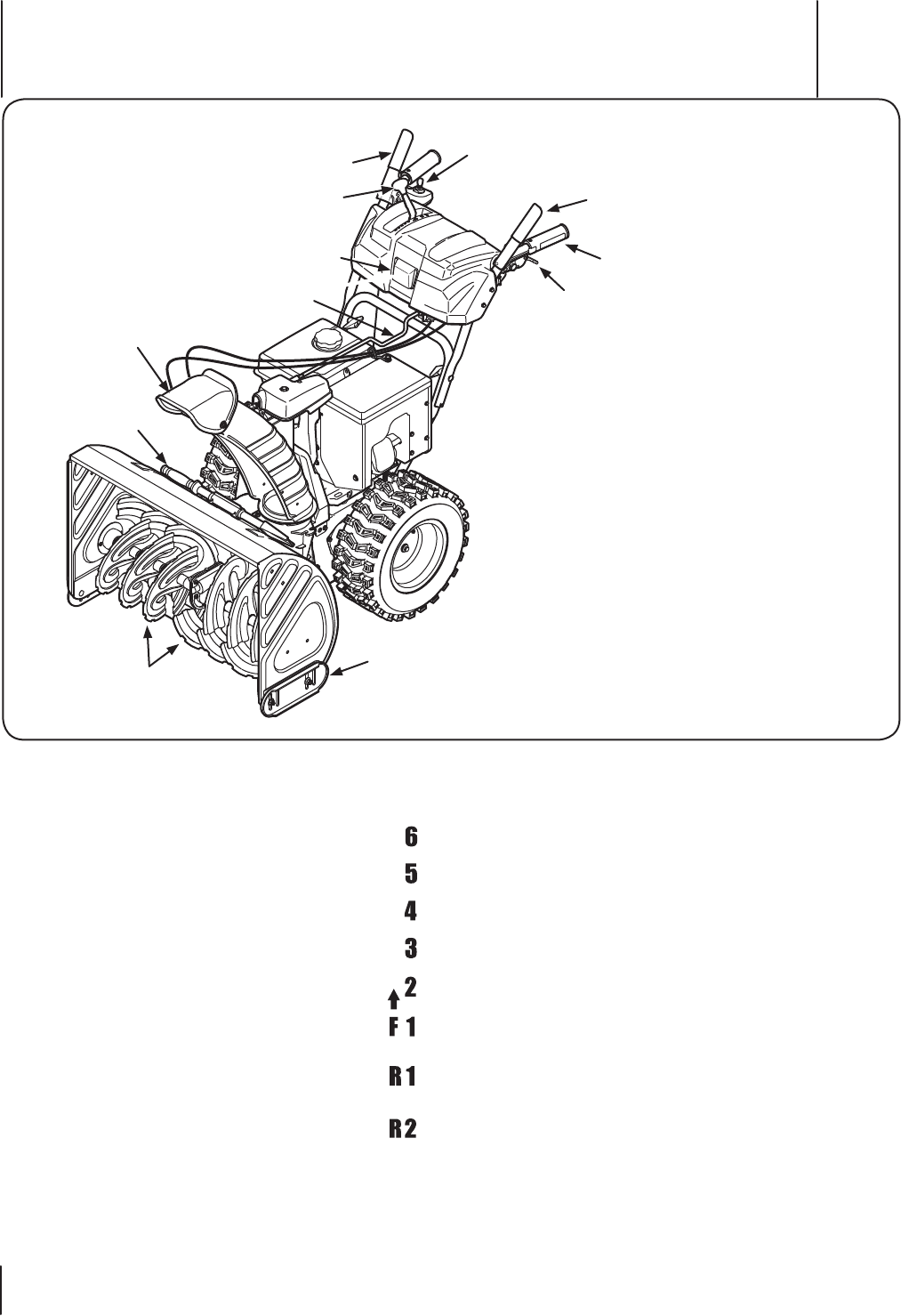 Los controles y características de la máquina quitanieve se describen a continuación y se ilustran en la Figura 4-1 (Unidad de muestra