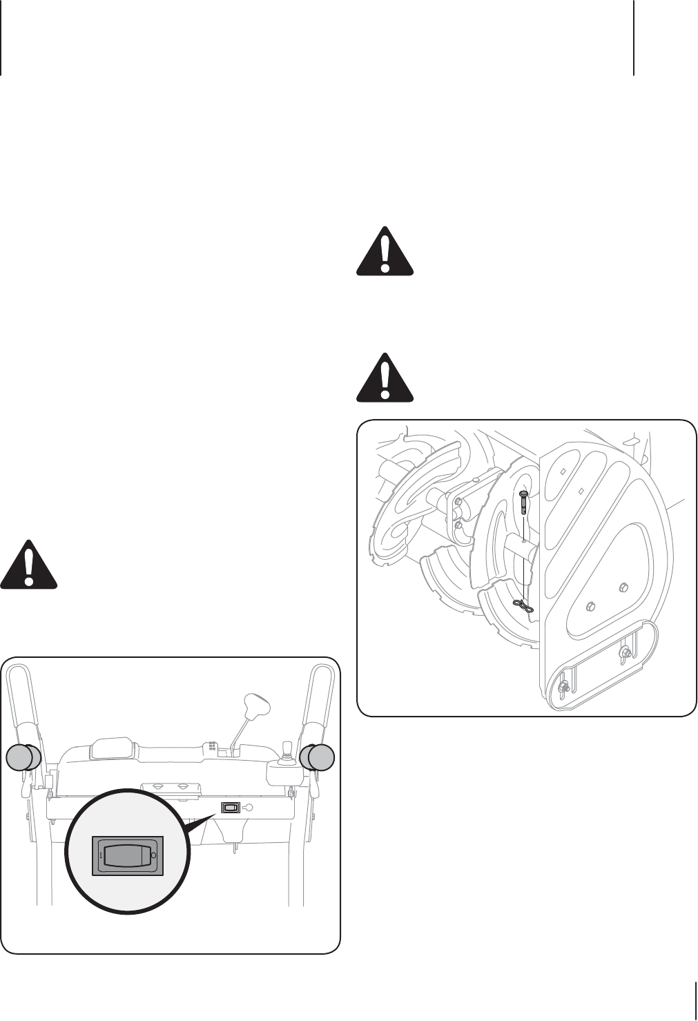 Para engranar las barrenas y comenzar a quitar la nieve, apriete