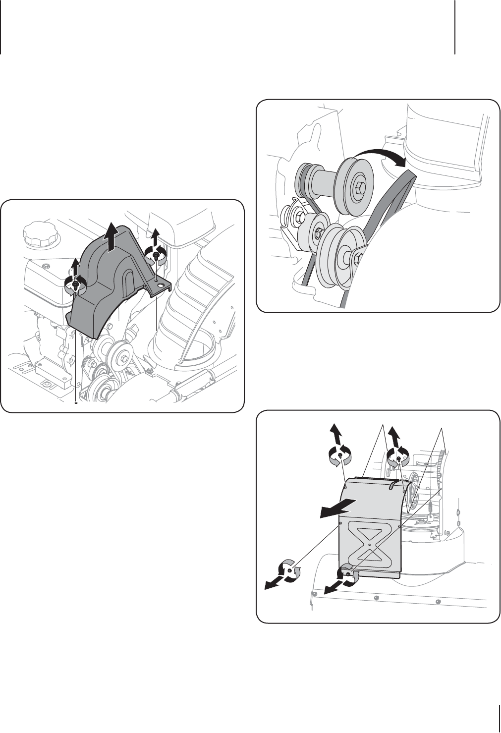 3. Saque la correa de la barrena de la polea del motor. Vea la