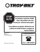 STOP ALTO For problems or questions, DO NOT return this product to the store. Contact your Customer Service Agent . Para problemas o preguntas, NO devolver este producto a la tienda Contacte a su Agente de Servicio al Cliente. U.S.A. Imported by: MTD LLC P.O. Box 361131 Cleveland, OH 44136-0019 For Consumer Assistance Please Call Para La Ayuda Del Consumidor Llame Por Favor U.S.A.