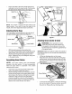 AttachingSide-DischargeChute Remove the grass catcher and let the discharge door close. On the right side of the mower, lift the mulching plug and slide the two hooks of the side-discharge chute under the hinge pin on the mulching plug assembly. Lower the mulching plug. See Figure 9. UsingMulch Plug Lift the mulch plug and remove the discharge chute up and away from the mower. Let mulch plug rest against the deck. Operate mower without the grass catcher. Refer to page 11.