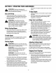 SECTION5: OPERATING YOURLAWNMOWER a firm grip on the starter handle, let the rope rewind slowly. ,_ instructions andRead WARNING: warnings and understand on the machine all and in this manual before operating. ToStopEngine Gas& OilFill-Up • • • • Check oil level and add oil if necessary. Follow relevant instructions in the engine manual for this. Service the engine with gasoline as instructed in the engine manual. WARNING: UsingYourLawnMower Use extreme care when • handling gasoline.