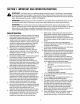 SECTION9: TROUBLE-SHOOTING Problem Possible Cause Corrective Action Engine fails to start 1. 2. 3. 4. 5. 6. Blade control handle disengaged Spark plug wire disconnected Fuel tank empty, or stale fuel Blocked fuel line Faulty spark plug Engine flooded 1. 2. 3. 4. 5. 6. Engage blade control handle Connect wire to spark plug Fill up tank with fresh gasoline Clean fuel line Clean, adjust gap, or replace Wait a few minutes to restart, Do not prime. Engine runs erratic 1. 2. 3. 4. 5.