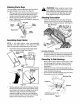 For rough or uneven lawns, move the height adjustment handles to higher cutting height position. \ Height Adjustment Lever Notch Lower Handle Figure 14 Reassemble the upper handle to the lower handle. Place the hairpin clips in the inner holes of the weld pins and replace the carriage bolts and wing nuts on te handle brackets. Attach the starter rope as instructed in the Assembly section.