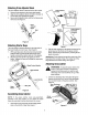 AttachingDriveAdjusterBlock Grass Catcher The drive adjuster block is attached to the drive cable. 1. 2. 3. Frame Remove bolt attached to the lower right handle. Align the drive adjuster blockwith hole in handle. Its curved side goes against the handle, Secure drive adjuster block with the bolt previously removed. See Figure 5. _ Adjuster Block / Bolt \ __ _ .° insert Trame / Grass-_\ Bag _--_-_ Plastic Channel Grass Catcher Assembly Drive Figure 5 AttachingStarterRope Figure 7 The rope guide