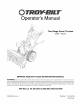TABLEOFCONTENTS Content ImportantSafeOperation Practices Assembling YourSnowThrower KnowYourSnowThrower Operating YourSnowThrower MakingAdjustments Page 3 6 8 10 13 Content Maintaining Your Snow Thrower Servicing Your Snow Thrower Troubleshooting Illustrated Parts List Warranty Page 15 15 20 22 Back Cover FINDINGMODELNUMBER This Operator's Manual is an important part of your new rear-tine tiller. It will help you assemble, prepare and maintain the unit for best performance.