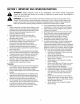 Operation 1. Donotputhandsorfeetnearrotatingparts,in the auger/impeller housing or chute assembly. Contact with the rotating parts can amputate hands and feet. 2. 3. 4. 5. 6. 7. 8. The auger/impeller control lever is a safety device. Never bypass its operation. Doing so makes the machine unsafe and may cause personal injury. The control levers must operate easily in both directions and automatically return to the disengaged position when released. Never operate with a missing or damaged chute assembly.