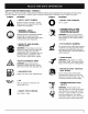 SAFETY AND INTERNATIONAL SYMBOLS This operator's manual describes safety and international symbols and pictographs that may appear On this product. Read the operator's manual for complete safety, assembly, operating and maintenance and repair information. SYMBOL MEANING SYMBOL MEANING • ON/OFF Indicates danger, warning or caution. • SAFETY May be usedALERT in conjunction SYMBOL with other symbols or pictographs.