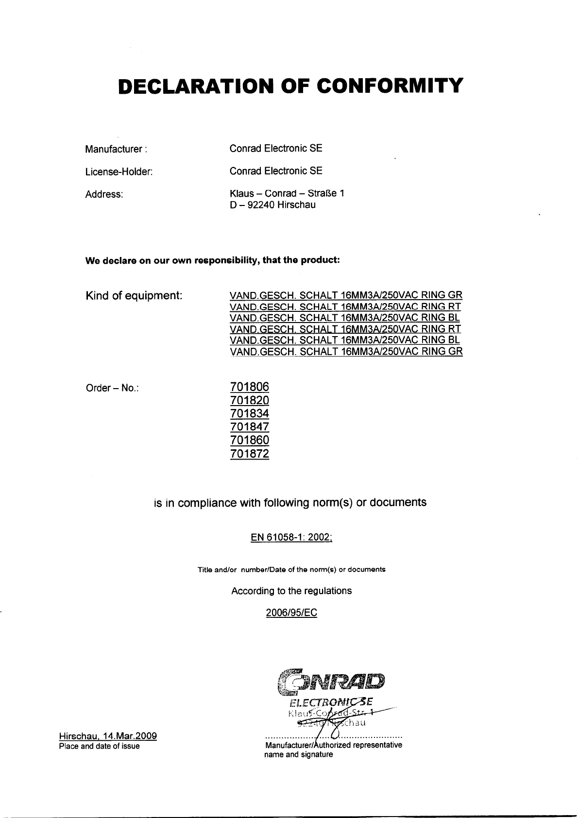 Declaration of conformity