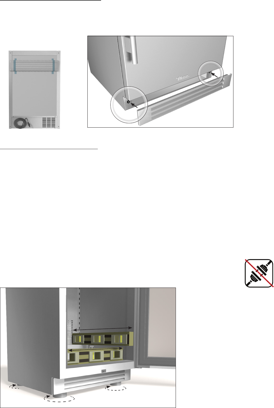 removal and door operation will be effected by leveling. Adjust leg levelers on the front and back of the