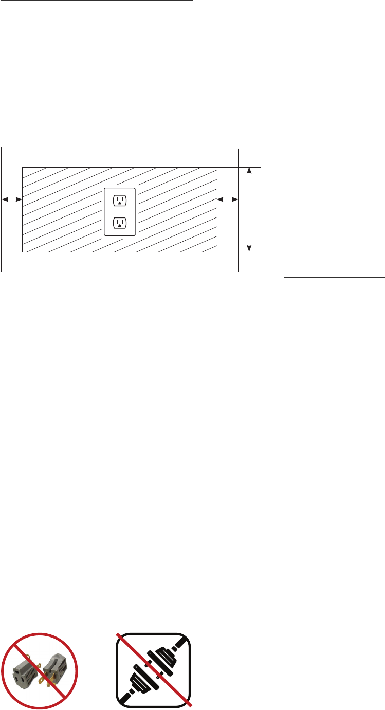 electrical outlet must be positioned as shown below.
