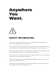Anywhere You Want. SAFETY INFORMATION • Do not try and lift the RTT on your own; make sure to have at least 2 people, using proper lifting techniques. • Ensure that the RTT is installed correctly and that all connections, straps and surfaces are checked regularly for degradation and loosening. • Ensure that the roof rack or roof bars can support the full weight of the RTT (70kg) while in motion or supporting two adults.