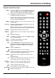 Connections and Setup Remote Control Functions INPUT Opens the Input list; then press INPUT repeatedly to select the video input, or press ▲/▼ to highlight an options, and press OK to select the desired option. 0-9 (Alphanumeric buttons) Enters a channel number, then press OK (or let the entry timeout). • (dot) To enter a digital channel with a sub-channel, enter the main channel; then, press the dot (•), the subchannel, and then the OK button.