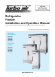 CAUTION! PLEASE KEEP POWER SWITCH ON BEFORE OPERATING THIS EQUIPMENT Turbo Air Speed up the Pace of Innovation Refrigerator Freezer Installation and Operation Manual Please read this manual completely before attempting to install or operate this equipment! Full Stainless Steel Interior and Exterior SOLID DOOR REFRIGERATOR TSR-23SD* TSR-35SD TSR-49SD TSR-72SD SOLID DOOR FREEZER TSF-23SD TSF-35SD TSF-49SD TSF-72SD www.turboairinc.
